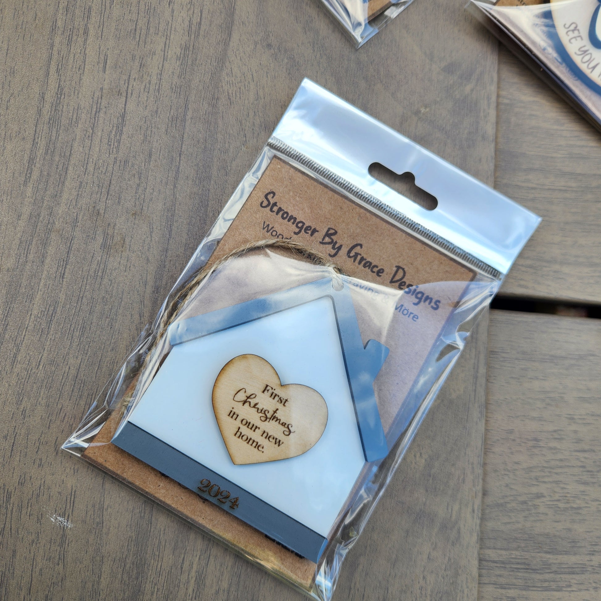 First Christmas in our new home ornament. This product is handmade and created to have dimension. Comes with packaging, that makes it great for gifting.