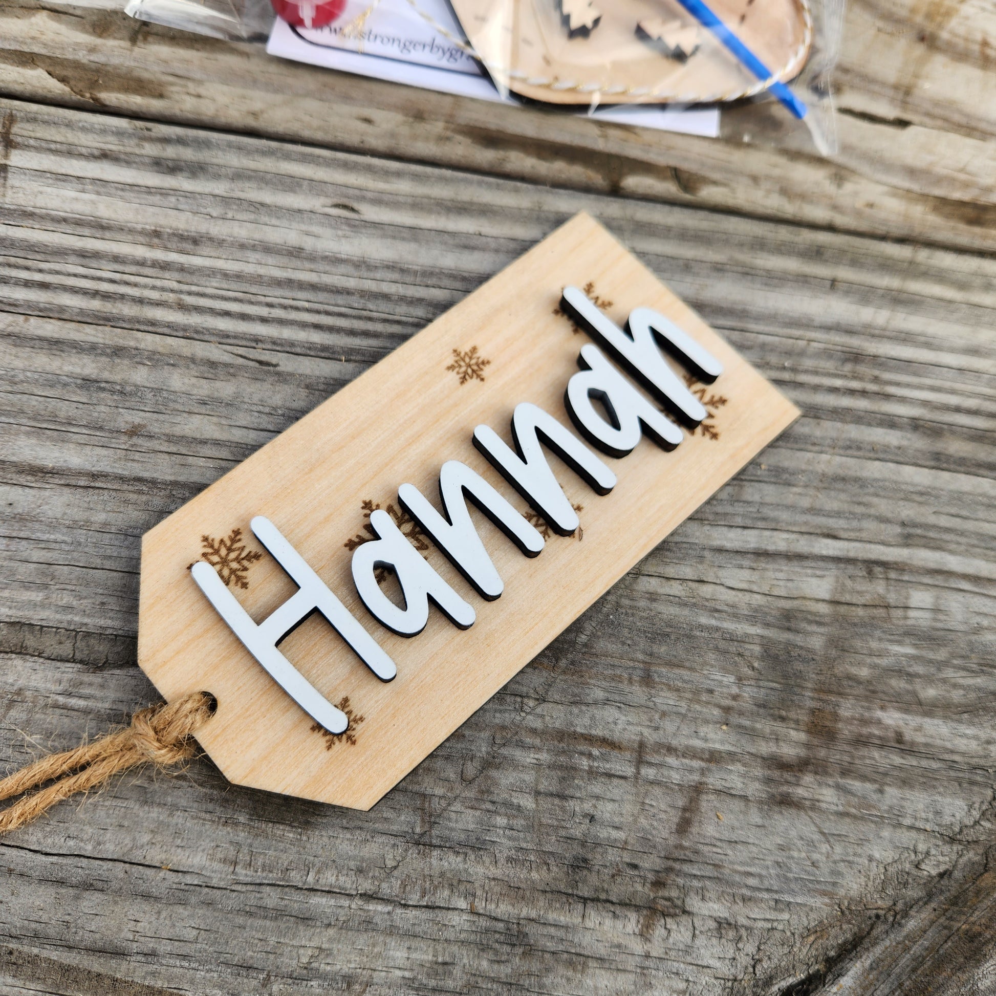 Christmas Stocking Tags ~ Personalize your Christmas stockings this year with 3D name tags. Tags are made from wood, and have a painted finish on the name.