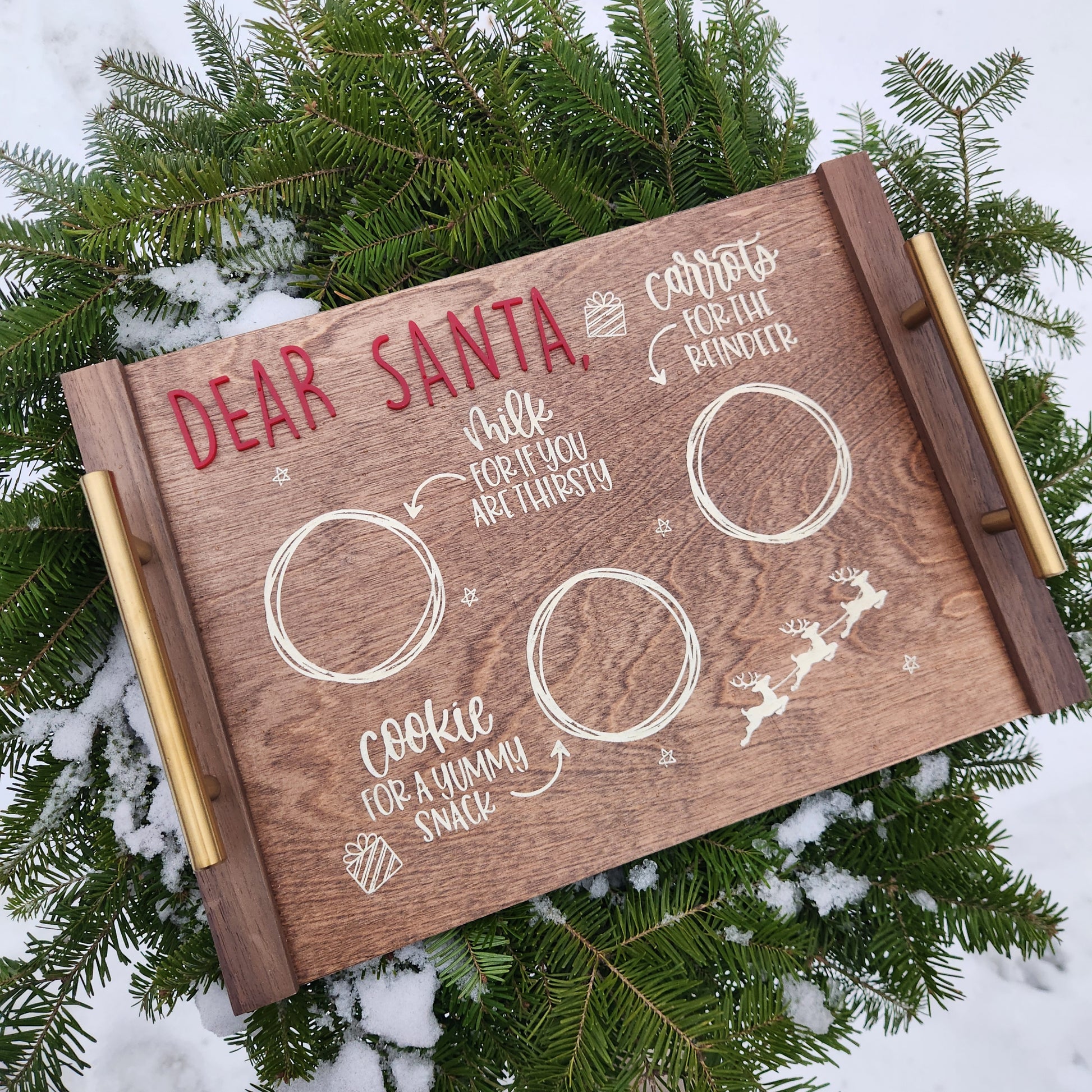 A Santa tray is a festive platter to display your treats for Santa and his reindeer. Add to the magic and excitement this Christmas season!